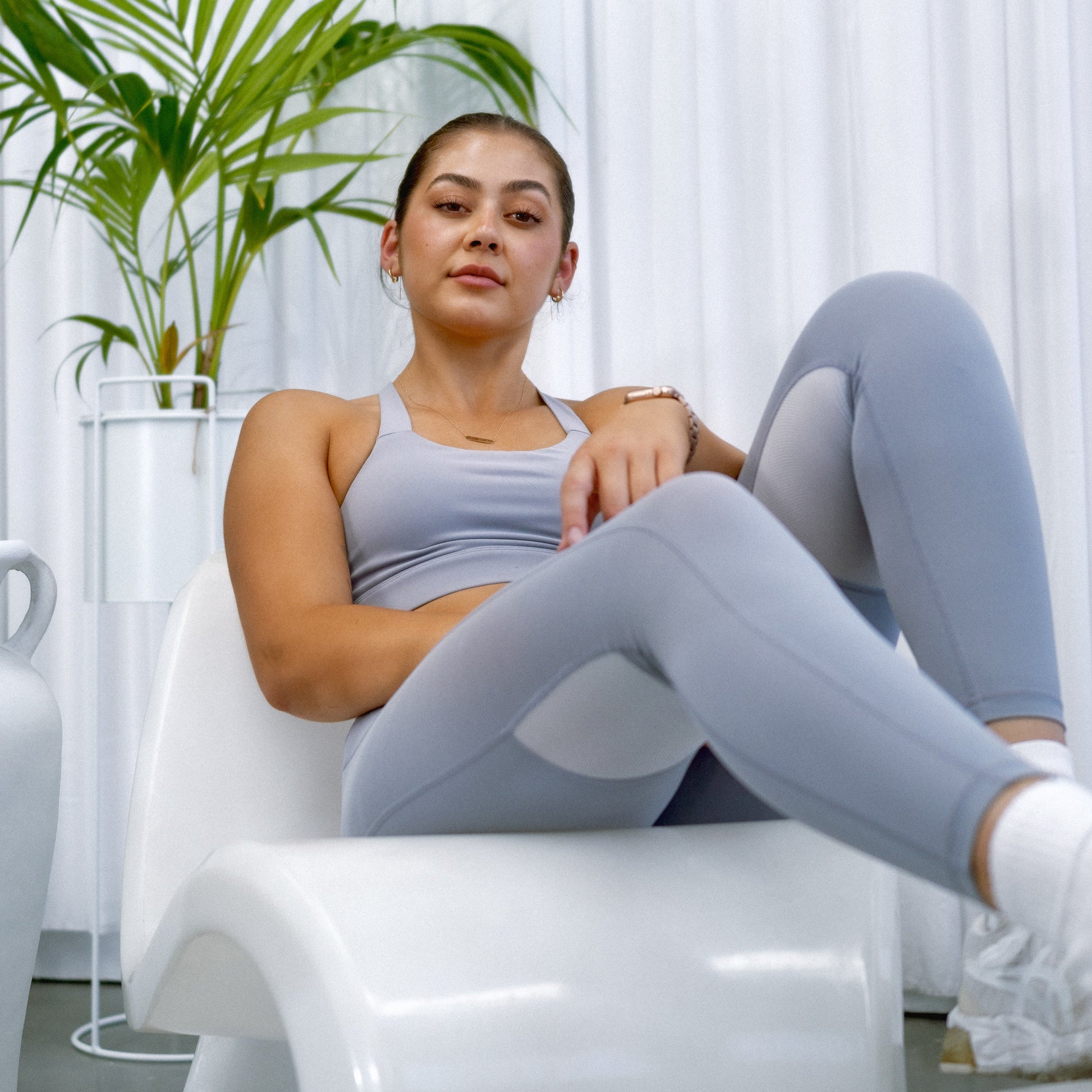 Introducing our Glacier Tights, an ultra-stretchy legging crafted from 95% rayon and 5% spandex for optimal performance. This eye-catching set features glacier blue/grey for an elevated look that takes you from gym to street. The set comes complete with a matching sports bra for a coordinated look. Enjoy maximum breath ability and flexibility with our Glacier Tights.