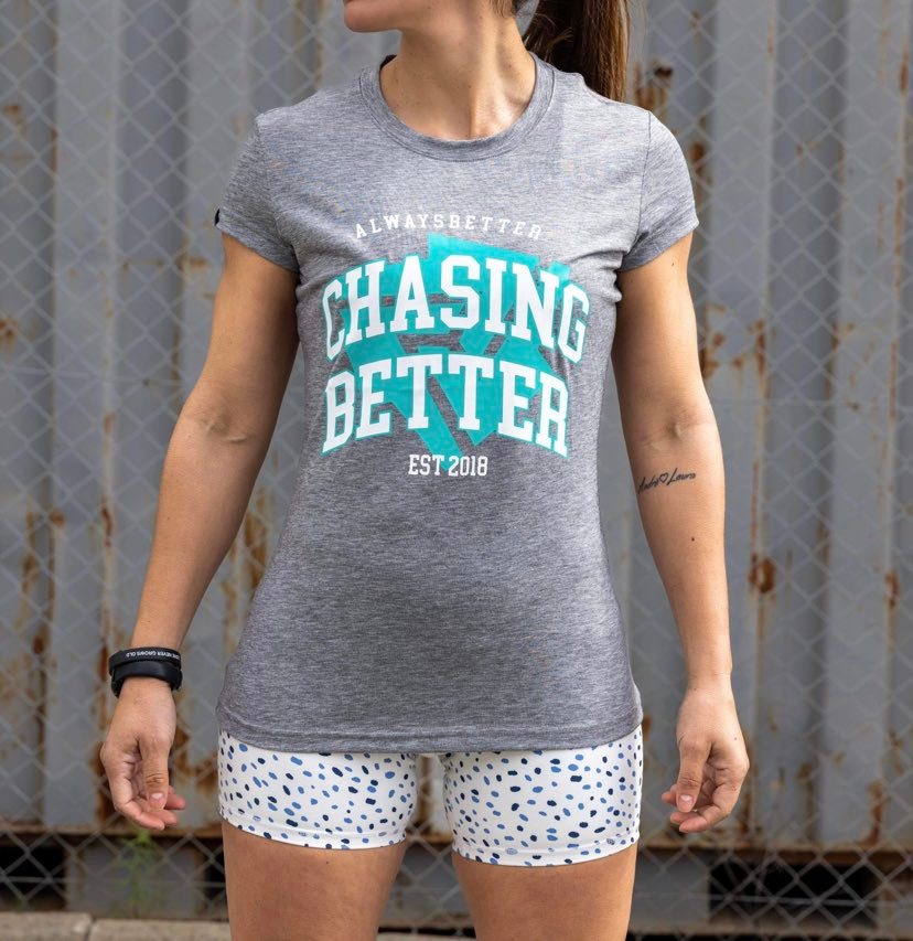 With the iconic ChasingBetter logo proudly displayed, this t-shirt serves as a symbol of determination, inspiring you to chase your dreams and surpass your limits. Elevate your style and embrace a mindset of continuous improvement with the ChasingBetter Ladies Light Grey T-Shirt.
