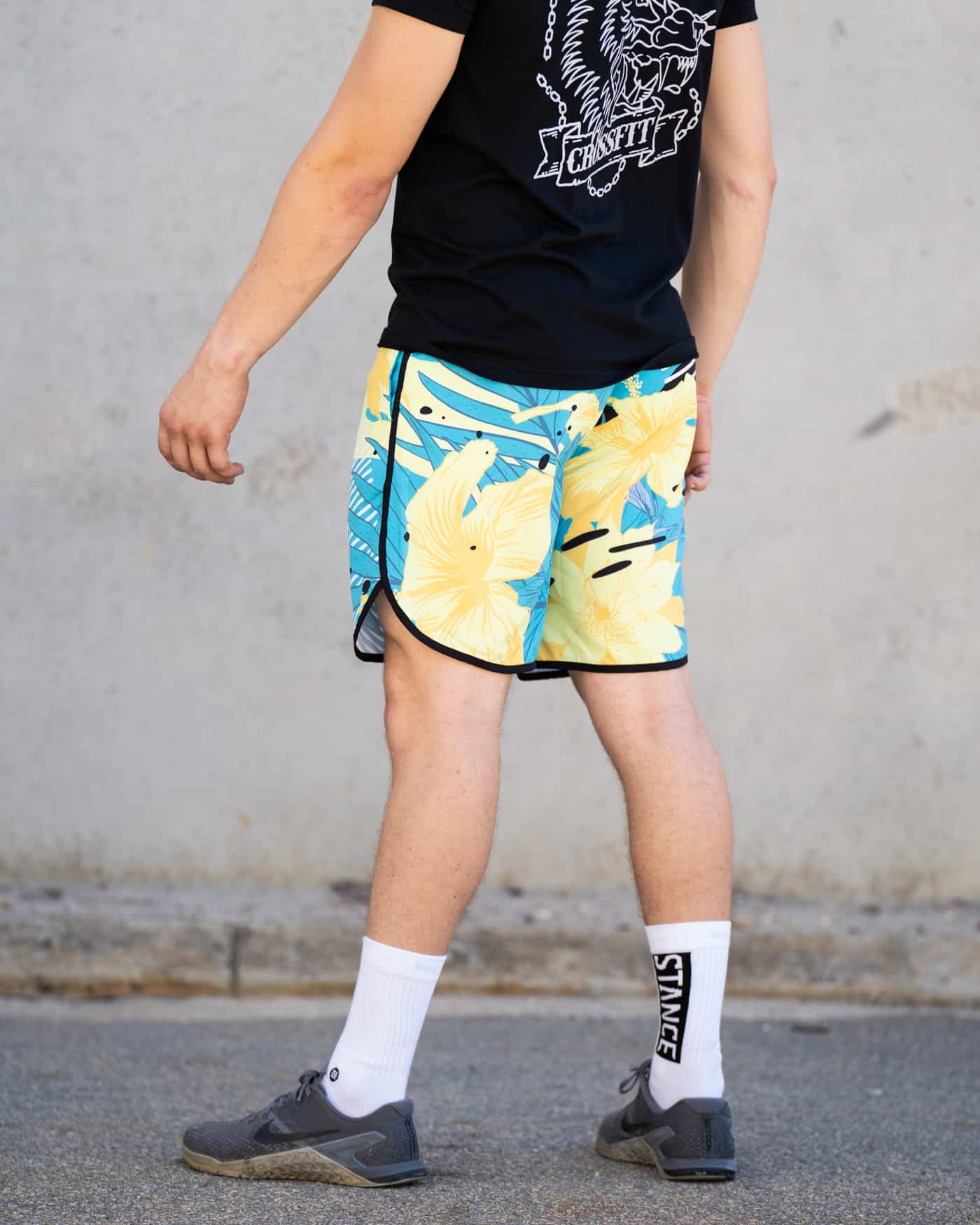 The ChasingBetter Venice Beach Series Shorts 4-way flex material allows for maximum range of motion, has a 360 drawstring for perfect fit and a wide side split which is made for squatting. The dual side pockets are phone friendly and are constructed of mesh for an anti drag measure during swims, the Quick-Dry fabric means that they dry faster when wet.