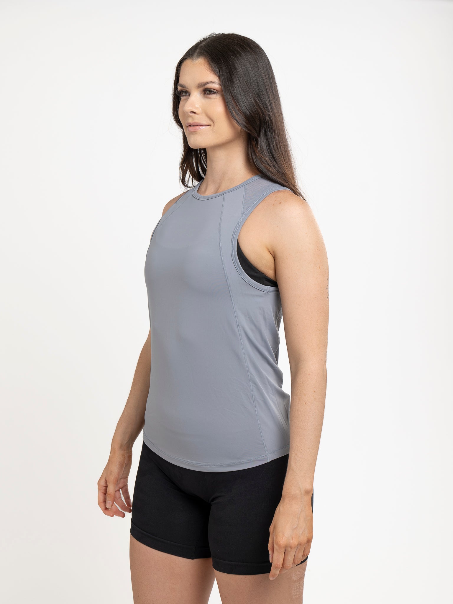 The Melanie Active Tank offers a stylish combination of cool comfort, courtesy of its lightweight cotton-poly blend and loose fit, and eye-catching net detail along the shoulders and keyhole back. Perfect for staying active and looking good!