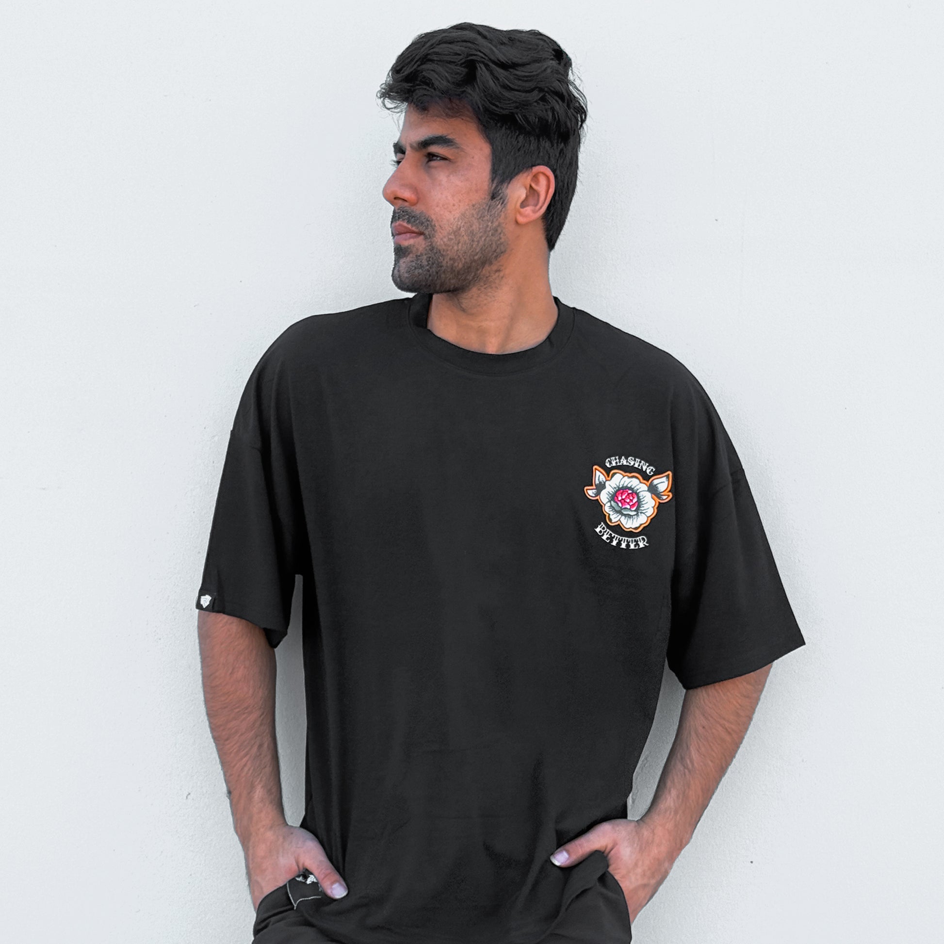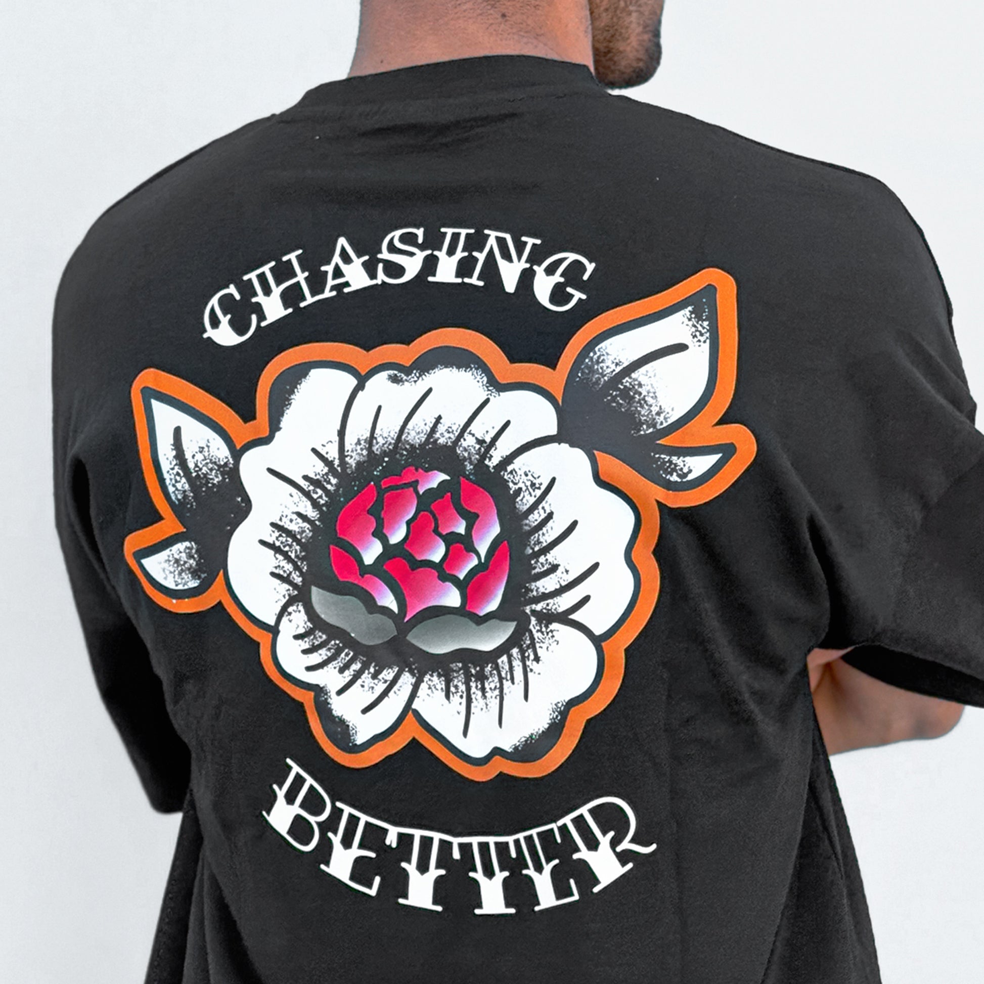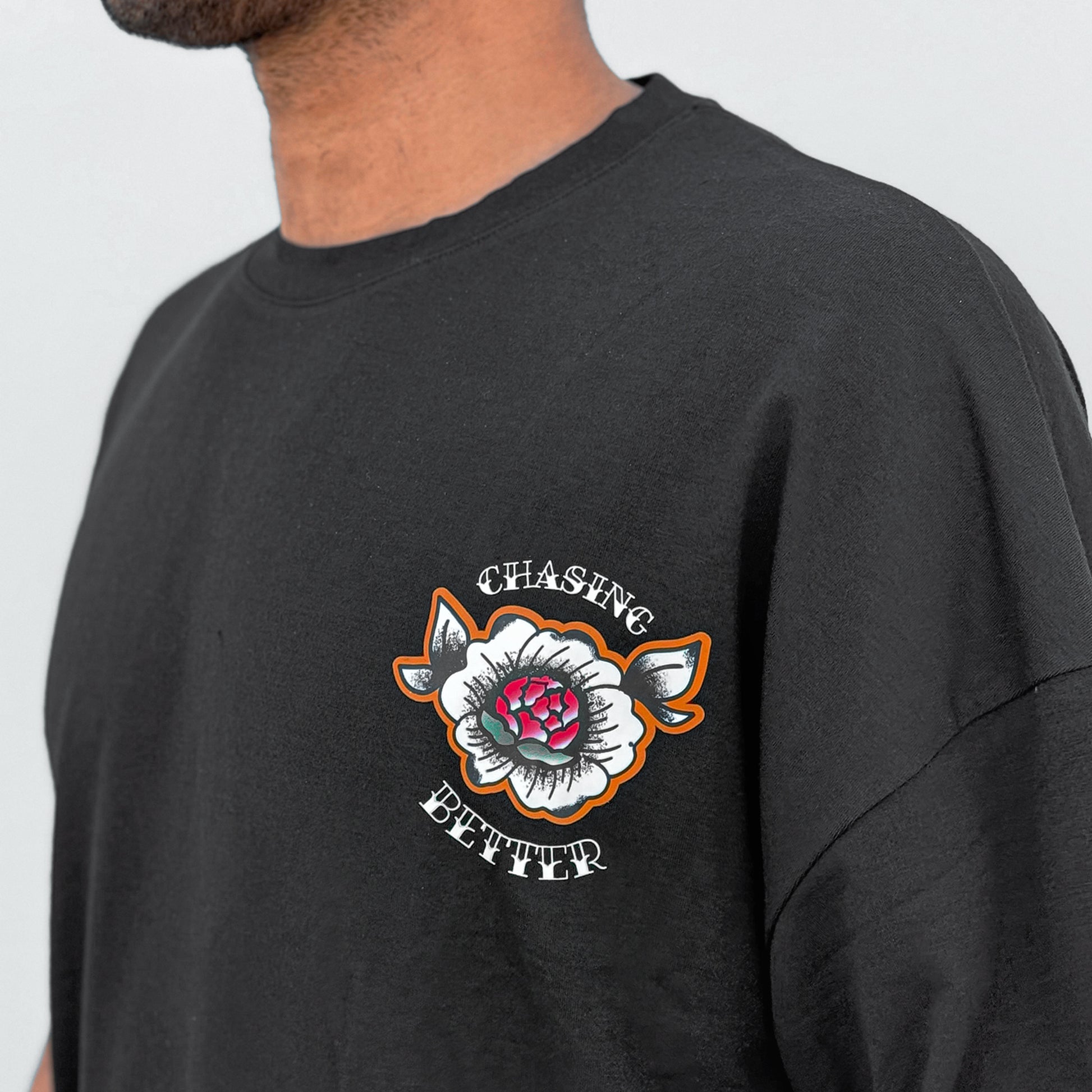 Introducing our new Rose ChasingBetter Oversized Tee—the ultimate blend of style and comfort, perfect for elevating your wardrobe. With its relaxed, oversized fit, this tee offers the ideal laid-back look. Featuring a bold American traditional rose graphic on soft, high-quality fabric, it’s designed to make a statement wherever you go. Whether you're hitting the gym or the streets, this tee brings effortless style to any outfit.