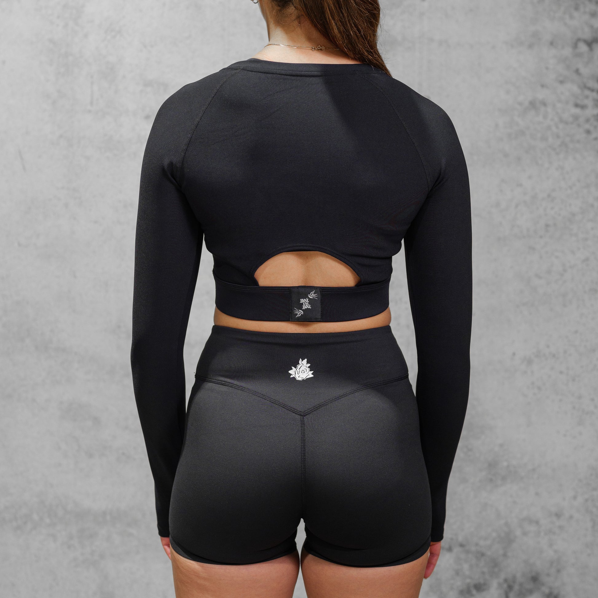 The Yasha Cropped Long Sleeve Top is the perfect layering piece as the temperature starts to drop. Crafted with meticulous attention to detail, this top features a cropped length that hits just above the waist, accentuating your curves while providing unrestricted movement.